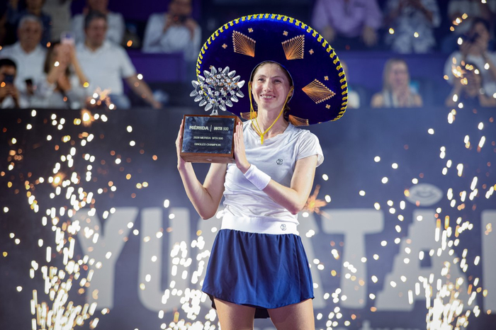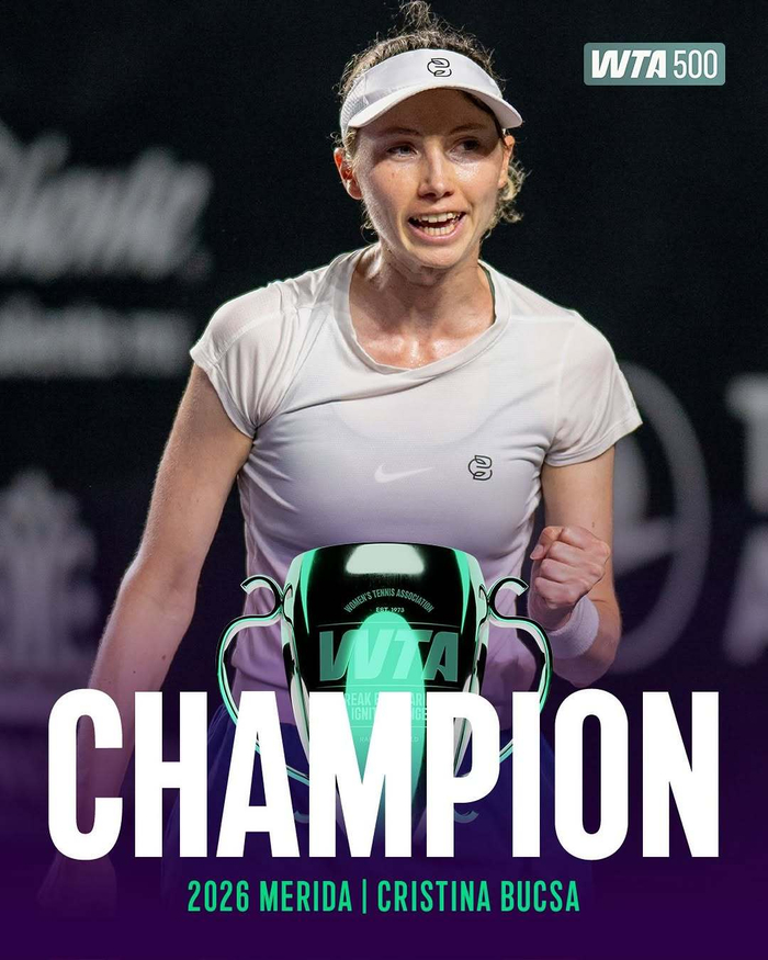 3月2日,WTA500梅里达站决赛,布克沙以6-1 4-6 6-4击败弗莱彻,夺得职业生涯首个巡回赛单打冠军/图源:WTA官方微博(以下同)