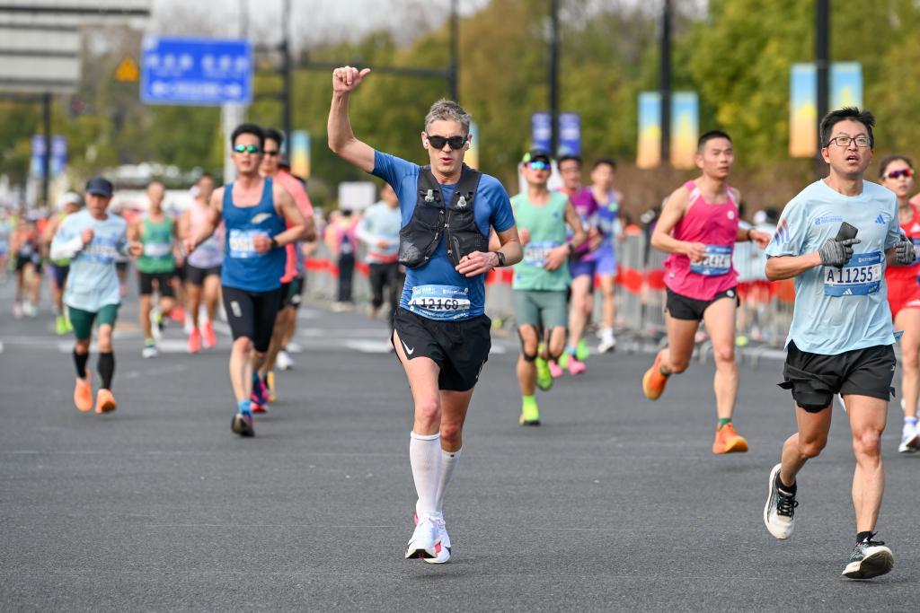 2026年3月15日,上海,一名外国选手在比赛中竖起大拇指点赞。澎湃新闻记者 朱伟辉 图