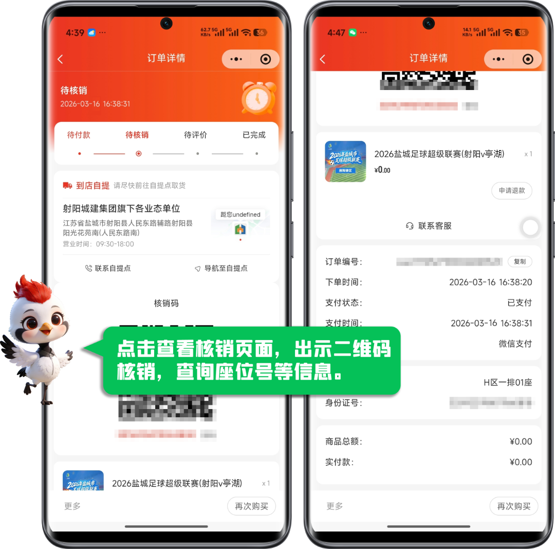 3月14日2026年盐城市足球超级联赛已经火热开赛啦~小组赛第三轮3月21日射阳队主场对阵亭湖队即将开票本次抢票分为四轮次3月16日-3月19日每天上午10:00在“我的盐城”APP开抢(2)登录“我的盐城”APP ,进入射阳板块→消费之窗→赛事活动(如图所示);(3)点击足球赛抢票进入抢票页面,选择足球联赛射阳主场门票链接;(4)点击购买,支付结算完成购票...